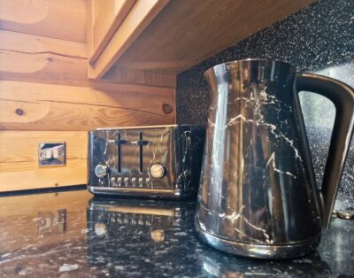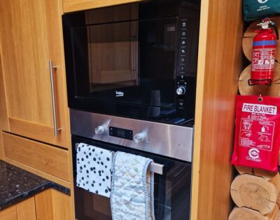 Our log cabin has all the modern conveniences that you would expect at home, including; oven, microwave, fridge freezer, dishwasher, kettle & toaster - plus washing machine